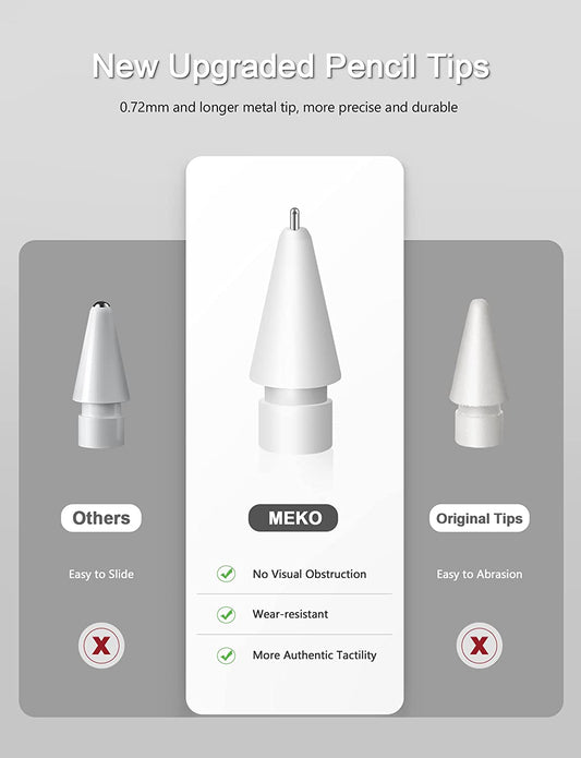Pointes de crayon améliorées {Pen Like} compatibles avec Apple iPad Pro 2ème génération – MEKO Lot de 4 pointes de stylet Apple 0,72 mm sans usure, contrôle précis, pointes de stylet Apple, blanc