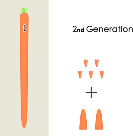 Étui pour Apple Pencil 2ème génération, étui en silicone souple, motif carotte mignon, support de protection, accessoires compatibles avec Apple Pencil 2ème génération (Orange)