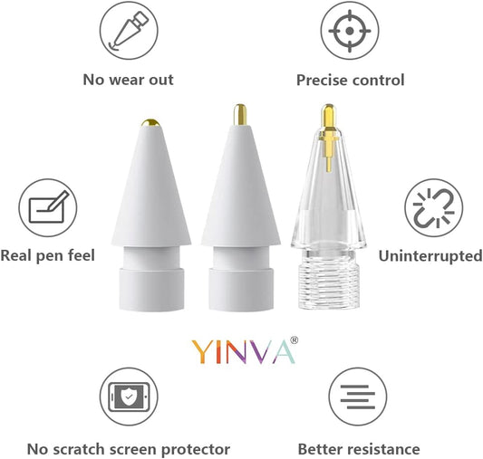 YINVA Lot de 3 pointes de crayon pour Apple Pencil, 3 styles de pointe fine, contrôle précis, pointe de rechange pour Apple Pencil 2ème génération, accessoires iPad pour Apple Pencil 1ère génération (blanc, transparent)