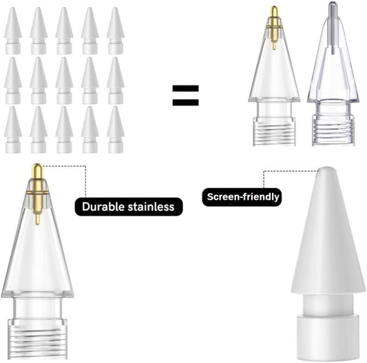 Compatible with Upgraded [Pen like ] Pencil Tips Fits for Apple 2Nd 1St Gen Ipad Pro Pencil, Replacement Ipencil Nibs for Ipad Pro Pencil,No Wear Out Fine Point Precise Control Resistance White&Clear