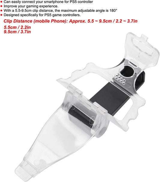 PUSOKEI Support à clip pour manette sans fil PS5, support de téléphone portable 180° pour manette de jeu PS5, support de téléphone de jeu, contrôleur de téléphone portable pour manette de manette PS5, support pour smartphone, accessoires de jeu