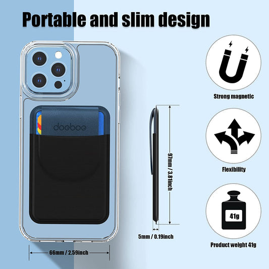 Doeboe pour Magsafe Wallet Iphone 14 13 Pro Max, Portefeuille de téléphone magnétique pour Iphone 13/Mini/Pro, Porte-cartes de téléphone en tissu extensible pour l'arrière du téléphone pour Iphone 12/Mini/Pro/Pro Max, jusqu'à 5 cartes (Bleu)