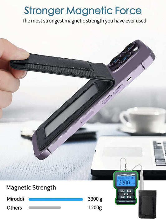 Miroddi Magsafe Wallet Stand - Portefeuille magnétique avec support réglable, porte-cartes Magsafe pour iPhone 14/14 Plus/14 Pro/14 Pro Max et séries 13/12, fenêtre d'identification ouverte, convient à 9 cartes, cuir végétalien, noir