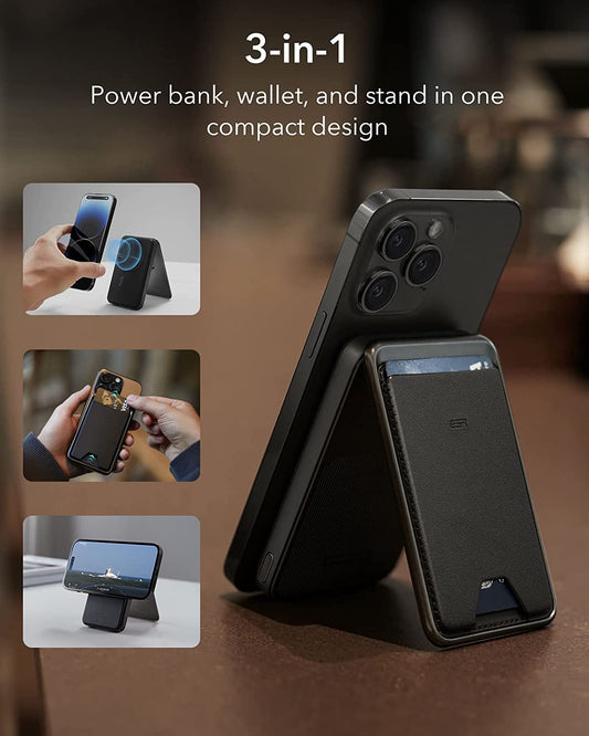 ESR Magsafe Battery Pack (Halolock), portefeuille de banque d'alimentation 5 000 mAh avec câble USB-C, portefeuille Magsafe et support réglable, chargeur portable Magsafe pour iPhone 14/13/12 (sauf 13/12 Mini), noir minuit