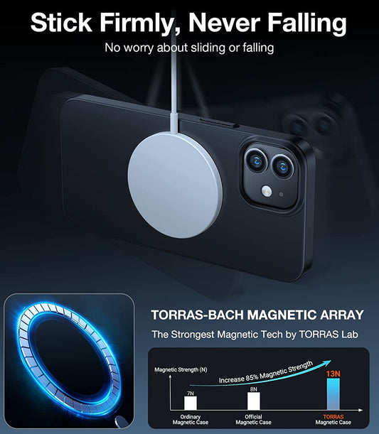 TORRAS Coque magnétique fine conçue pour iPhone 12 et iPhone 12 Pro avec magnétique invisible (compatible avec Magsafe) (sensation veloutée) pour iPhone 12 6,1", noir