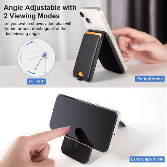 Liuzidit Support portefeuille magnétique en cuir pour iPhone, compatible avec le support portefeuille Magsafe pour iPhone série 14/13/12 avec Magsafe ou téléphones avec coque à ventouse magnétique, noir