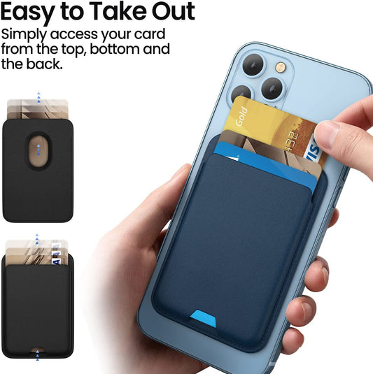Kimguard [Lot de 2 porte-cartes magnétiques avec Mag-Safe pour iPhone 14 Pro Max/14 Plus/14 Pro/14, pour iPhone 13 Pro Max/13 Pro/13/13 Mini, pour iPhone 12/12 Pro/12 Max/ 12 Mini, noir et bleu