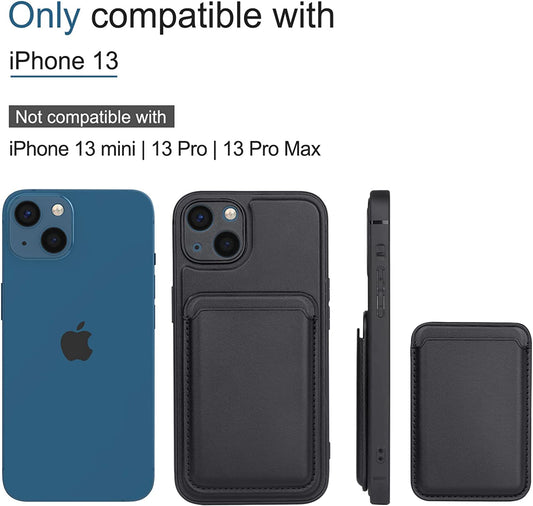 DK177 [2 en 1] Étui en cuir magnétique pour iPhone 13 + porte-cartes, porte-cartes en cuir PU magnétique, housse de protection antichoc compatible avec Magsafe 6,1 pouces, noir