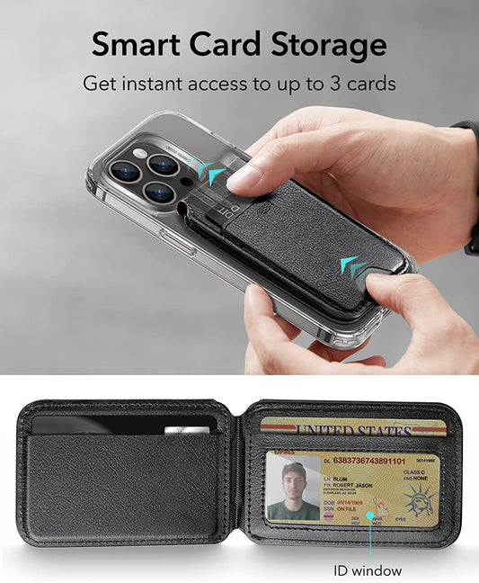 ESR Halolock Magsafe Portefeuille et béquille transparente, compatible avec iPhone 14 Pro Max, portefeuille Magsafe amovible noir avec support réglable, porte-3 cartes, protection de qualité militaire