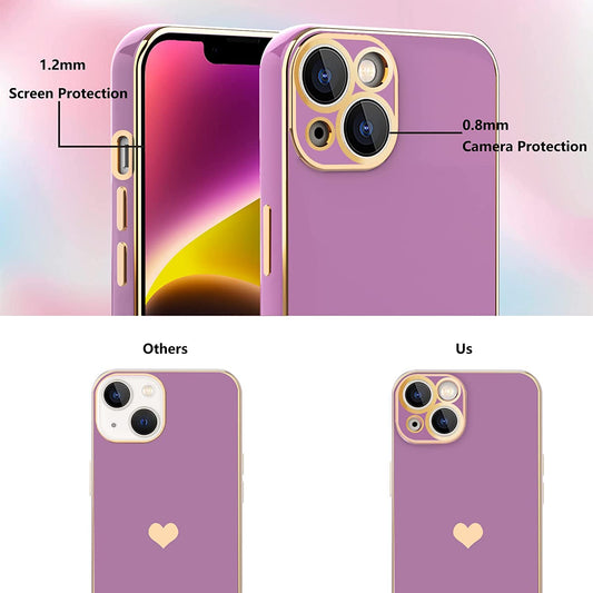 Tksafy Coque pour iPhone 14, motif cœur d'amour mignon pour femmes et filles avec protection complète de l'appareil photo, placage anti-rayures, TPU souple, résistant aux chocs, coque de téléphone pour Apple Iphone 14 6,1" 2022, lavande