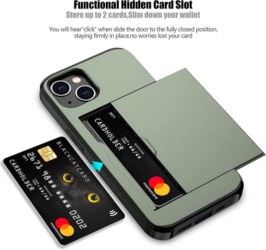Nvollnoe Coque pour iPhone 14 avec porte-cartes, protection robuste double couche, résistante aux chocs, fente pour carte cachée, étui portefeuille fin pour iPhone 14 pour femmes et hommes (vert)