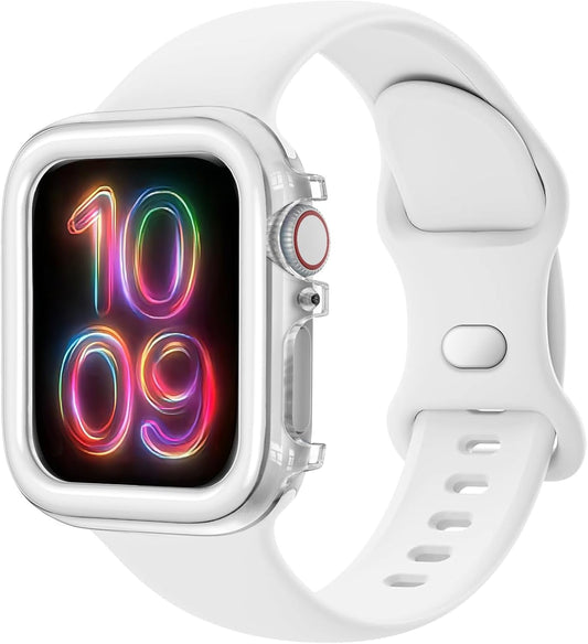DABAOZA Compatible for White Apple Watch Band 40Mm 38Mm 41Mm 42Mm 44Mm 45Mm 49Mm with Bumper Case, Women Girl Men Soft Silicone Watch Band Sport Strap for Iwatch SE Series 9 8 7 6 5 4 3 2 1