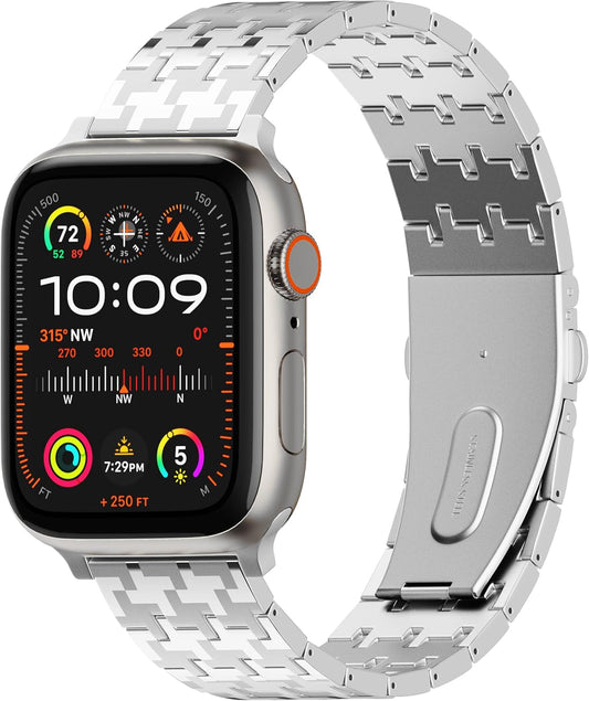 Cross Grid Metal Watch Band, Elegant Square, Compatible with Apple Watch Band 38Mm 40Mm 41Mm 42Mm 44Mm 45Mm 49Mm, Business Stainless Steel Metal Watch Band, Suitable for Iwatch Band Series 9, Ultra 2, Se, Ultra Series 8 7 6 5 4 3 2 1 Men and Women