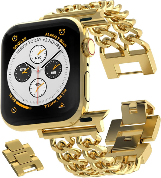 Compatible with Apple Watch SE Series 8 Series 7 6 5 4 3 2 1 Strap 45Mm 44Mm 42Mm 41Mm 40Mm 38Mm Ultra 49Mm Women'S Metal Linked Watch Band Steel Chain Iwatch Gold Bracelet