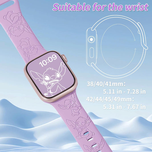 Cute Watch Band Compatible with Apple Watch Band 38Mm 40Mm 41Mm 42Mm 44Mm 45Mm for Stitch, Soft Silicone Replacement Sport Strap Compatible for Iwatch SE Series 7/6/5/4/3/2/1 for Kids