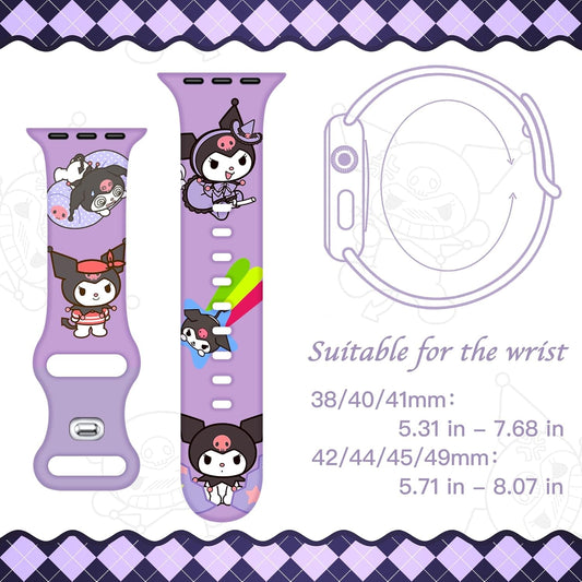 Compatible with Dressy Silicone Designer Cute Apple Watch Bands for Women Men 40Mm 41Mm 38Mm,Anime Iwatch Bands for Apple Watch Ultra 2 1 SE Series 9 8 7 6 5 4 3 2 1 Sport Band(Purple Rabbit)