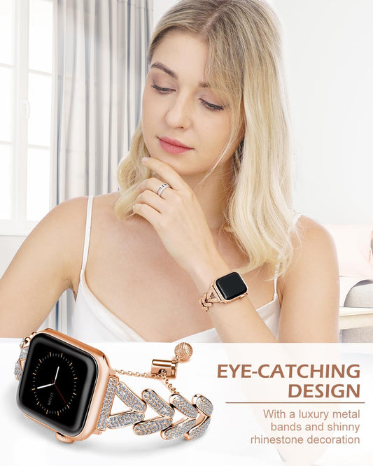 Compatible with Apple Watch Band 40Mm for Women, Bling Diamond Bracelet V-Shape Shiny Jewelry Metal Strap for Iwatch 38Mm 41Mm Series 8/7/6/5/4/3/2/1/SE Rose Gold