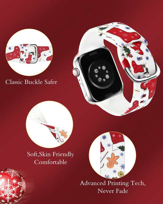 Christmas Watch Bands for Apple Watch Band 42Mm 44Mm 45Mm 49Mm, 3-Pack Soft Silicone Waterproof Strap Compatible with Iwatch Apple Watch Series Ultra 9 8 7 6 5 4 3 2 1 SE Women Men