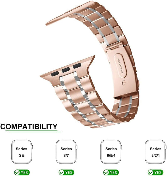 Compatible with Apple Watch Band 38Mm 40Mm 41Mm for Woman, Solid Stainless Steel Metal Wristband Replacement for Iwatch Series SE/7/6/5/4/3/2/1 (Rose Gold/Silver, 38Mm/40Mm/41Mm)