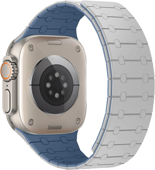 Compatible with Apple Watch Band 49Mm 45Mm 44Mm 42Mm 41Mm 40Mm 38Mm, Silicone Magnetic Adjustable Loop Strap for Iwatch Ultra 2 Ultra Series 9 8 7 SE 6 5 4 3 2 1 (49/45/44/42, Gray Blue)