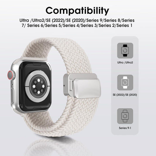 Arae 2 Pack Magnetic Stretchy Watch Band Compatible for Apple Watch Band 38Mm 40Mm 41Mm,Comfortable Adjustable Straps Wristbands for Iwatch Series 9 8 7 6 5 4 SE 3 2 1 Ultra 1 2 Women Men,Starlight P