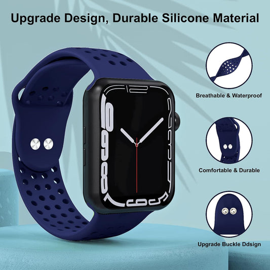 6 Pack Sport Bands Compatible for Apple Watch Bands 49Mm 45Mm 44Mm 42Mm 41Mm 40Mm 38Mm,Breathable Soft Silicone Sport Women Men Replacement Strap Compatible for Iwatch Series 9 Ultra2/Ultra 8 7 6 5 4 3 2 1 SE
