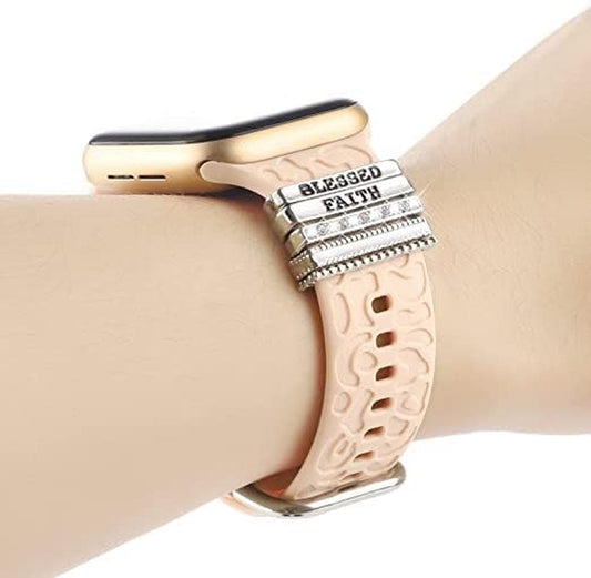 Decorative Rings Loops Compatible with Apple Watch Silicone Bands Metal Diamond Charms 45Mm 44Mm 42Mm 41Mm 40Mm 38Mm Iwatch Series 8 7 6 5 4 3 2 1 Accessories, Leopard Print Silver, Adjustable