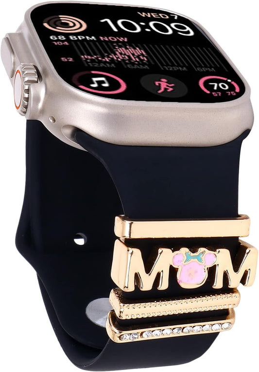 Decorative Rings Loops Compatible with Apple Watch Silicone Bands Metal Diamond Charms 45Mm 44Mm 42Mm 41Mm 40Mm 38Mm Iwatch Series 8 7 6 5 4 3 2 1 Accessories (Mom Love)