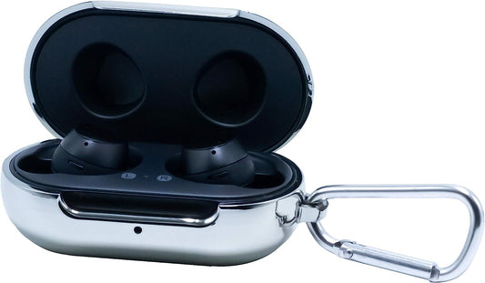 B&B PROS Galaxy Buds & Galaxy Buds+ Coque de protection en TPU souple résistant aux chocs avec porte-clés portable pour Samsung Galaxy Buds & Buds+ (prend en charge le chargement sans fil) (couleur argent)