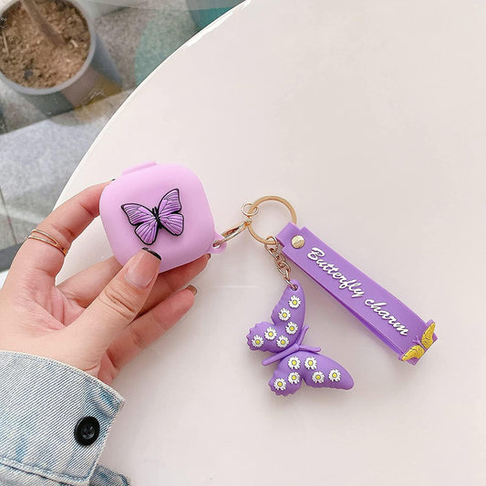 Coque en silicone compatible avec Samsung Galaxy Buds 2 (2021) / Galaxy Buds Pro (2021) / Galaxy Buds Live (2020) avec kit porte-clés papillon - Cadeau pour femmes, filles, enfants, adolescentes (violet)
