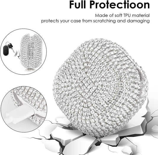 Filoto Coque pour Samsung Galaxy Buds 2 / Buds Live/Buds Pro/Buds 2 Pro, jolie coque de protection en TPU pour écouteurs avec boule disco brillante, porte-clés, accessoires pour femmes et filles (argent pailleté)
