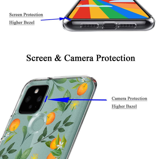 Unov Pixel 5 Coque transparente avec design en TPU souple absorption des chocs fine motif gaufré coque arrière de protection pour Pixel 5 6 pouces (saveurs d'agrumes)