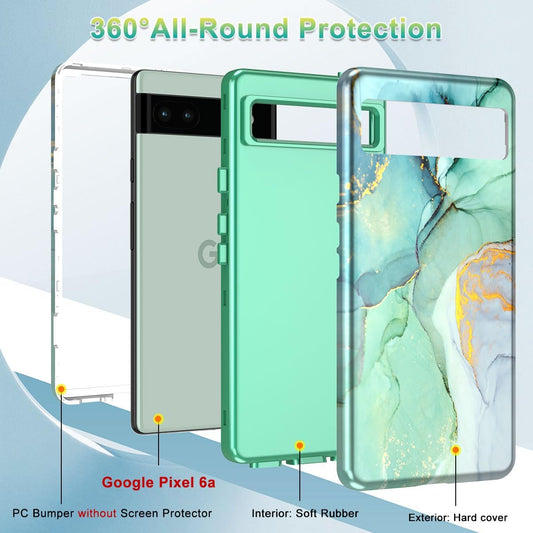 Btscase Coque pour Google Pixel 6A (2022), [5 en 1] avec 2 films de protection d'écran + 2 films de protection d'objectif d'appareil photo, motif marbre, coque de protection intégrale robuste à trois couches, résistante aux chocs, vert