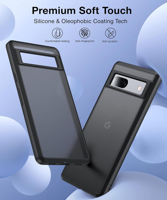 Série Soft Touch pour Google Pixel 7A, [anti-traces de doigts] [coupe fine] avec bord en silicone de protection militaire [résistant aux chocs] arrière rigide mat translucide pour Pixel 7A 5G, noir
