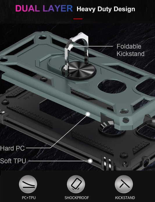 LUMARKE Coque pour Google Pixel 4A avec protecteur d'écran en verre (lot de 2), test de chute de 16 pieds, coque robuste de qualité militaire avec béquille magnétique, coque de protection pour Google Pixel 4A, vert pin