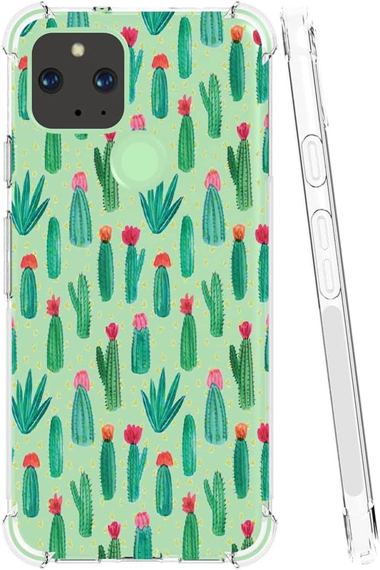 Coque transparente fine conçue pour Google Pixel 5, GD1YQ GTT9Q, absorption des chocs, motif floral, flexible, en caoutchouc TPU souple, coque de protection pour Google Pixel 5 (Cactus)