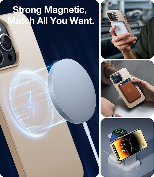 Alphex Coque magnétique avec support invisible pour iPhone 14 Pro Max [ressemble à un iPhone nu] [compatible avec Magsafe] Qualité militaire antichoc mate fine avec anneau de support pour femme et homme 6,7" Argenté