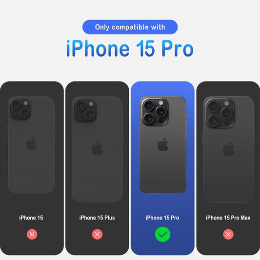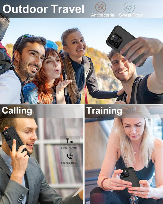 Dahkoiz for Iphone 15 Pro Phone Case, and Glass Screen Protector, Dust-Proof Port Cover, Full Body Non-Slip Rubber Covered, Wear-Resistant & Drop-Proof, Black/Black