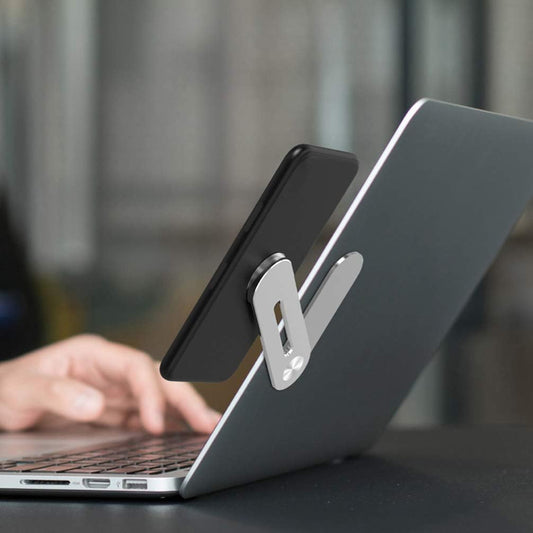 Support d'extension pour ordinateur portable, montage latéral à Clip sur moniteur, support magnétique pour téléphone portable (argent) - Support de téléphone