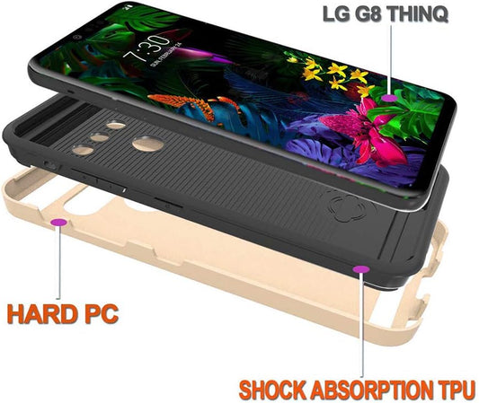 NEM Case LG G8 Thinq Phone Case, LG G8 Phone Case, LG G8 Hybrid Dual Layer Case, Résistant aux chocs Texture brossée Housse de protection intégrale Doré