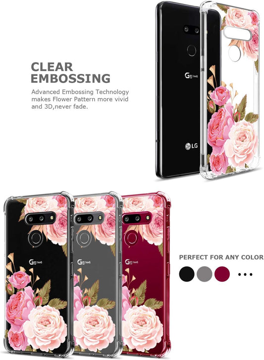 GREATRULY Coque de téléphone transparente à motif floral pour LG G8 Thinq (version 2019) pour femmes et filles, motif floral transparent, fine, souple, résistante aux chutes, en TPU, coussin en silicone, Fl-K