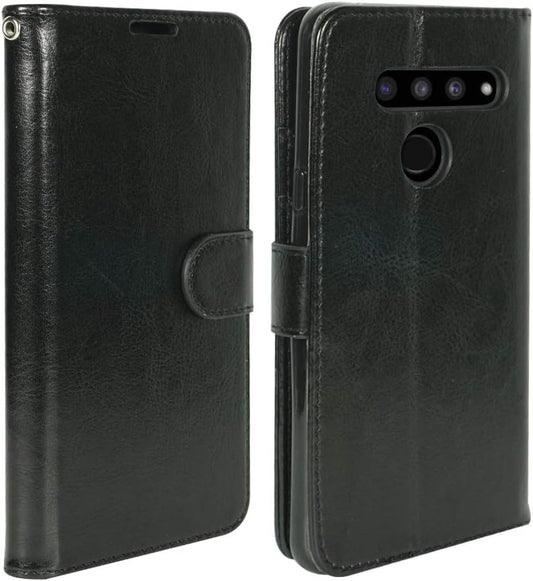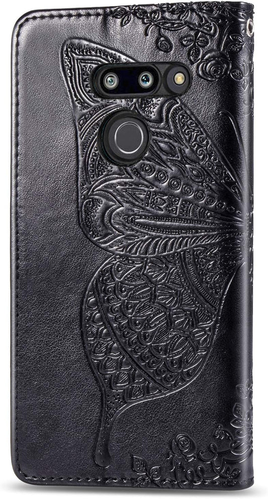 Zase Étui portefeuille pour LG G8 Thinq, design pour LG G8, housse de protection en cuir PU de qualité supérieure, étui à rabat en TPU avec dragonne, emplacement pour cartes, poche pour argent, béquille intégrée, noir uni