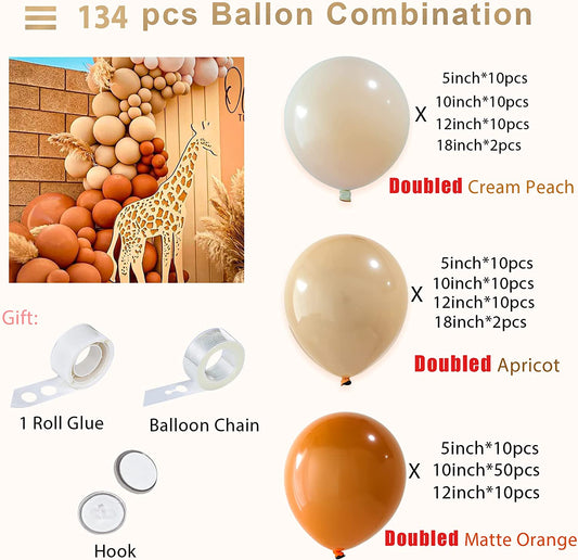 Ballons doubles orange brûlé 134 pièces Kit d'arche de guirlande de ballons Boho, ballons d'automne en terre cuite pour la décoration de fête d'anniversaire, de fête prénatale
