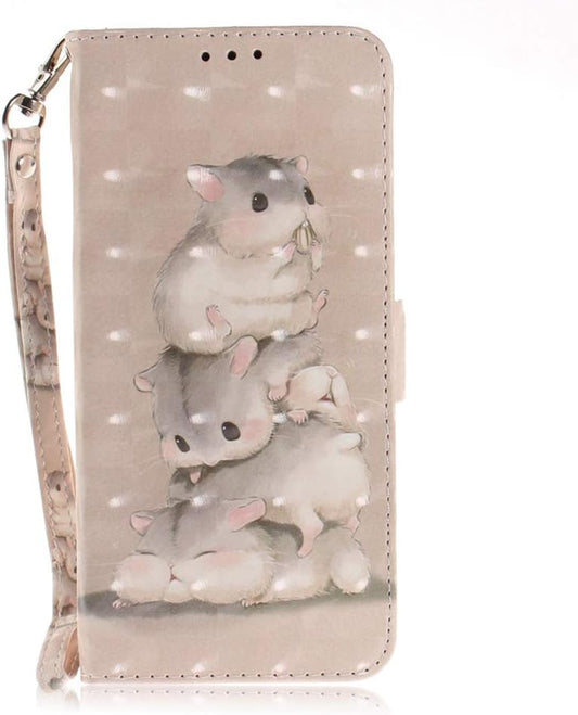 EMAXELER Étui portefeuille à rabat en cuir PU pour LG G7 Thinq avec motif de dessin animé créatif 3D avec béquille et emplacements pour cartes de crédit pour LG G7 / LG G7 Thinq Three Hamsters TX.