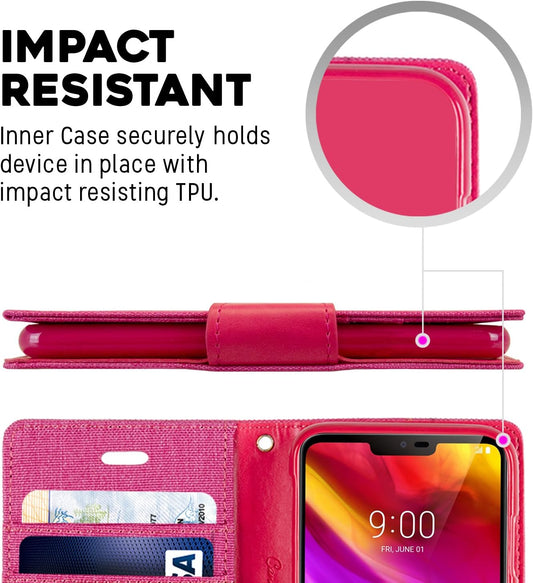 GOOSPERY Portefeuille en toile pour LG G7 Thinq Case (2018) Denim Stand Flip Cover (Rose) LGG7-CAN-PNK