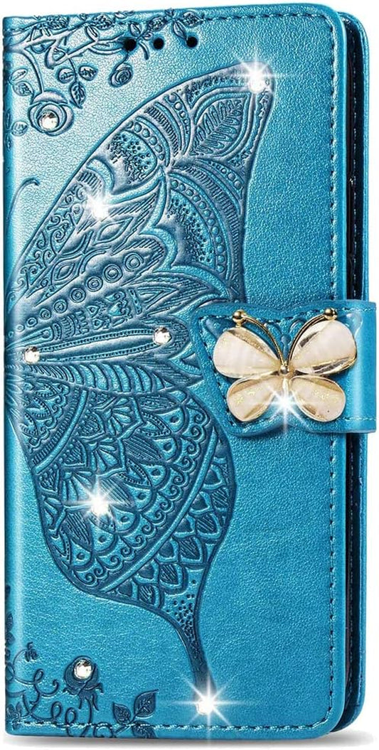 LEMAXELERS LG G7 Thinq Étui portefeuille à rabat en cuir PU avec emplacements pour cartes magnétiques et support pour LG G7 Thinq/Lg G7 One Diamond Butterfly Bleu SD