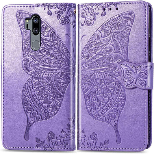 LEECOCO Étui portefeuille à rabat en cuir PU de qualité supérieure pour LG G7 Thinq, motif papillon en relief, protection complète du corps, support à rabat, support magnétique pour LG G7 Thinq/Lg G7 One Big Butterfly, violet clair SD