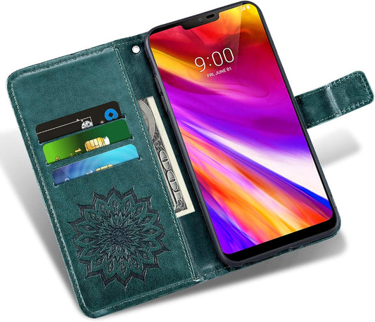 Étui de téléphone pour LG G7 Thinq Portefeuille avec film de protection d'écran en verre trempé Housse en cuir Flip Cover Porte-cartes Support Cell LGG7 One G 7 plus LG7 Fit Lg7Thinq 7G Thin Q G7+ G7Thinq Lgg7Thinq Femme Homme Vert foncé
