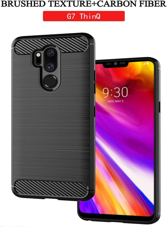 KOARWVC Coque de téléphone pour LG G7/LG G7 Thinq/Lg G7+ Thinq, Lg G7 Plusthinq LM-G710, coque en fibre de carbone, résistante aux chocs, robuste, anti-rayures, coque arrière en TPU souple pour LG G7 Thinq (Noir)