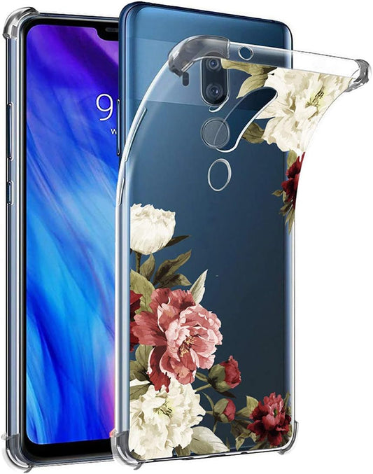 Ueokeird Coque pour LG G7 Thinq, coque pour LG G7 avec fleurs, fine, résistante aux chocs, motif floral transparent, coque arrière en TPU souple et flexible, coque de protection pour LG G7 Thinq (version 2018) (fleur de fleur)